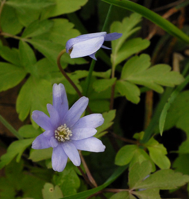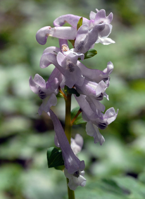 I soon found a large pink corydalis which I've never seen in the wild before but recognised from the pictures in the book. It was Corydalis solida which has the interesting English name of Bird-in-a-Bush. I can't find any reference to how the English name arose but Corydalis does come from the Greek meaning Crested Lark referring to the flower shape. Since Corydalis solida does grow in the forest this could be the "bush".