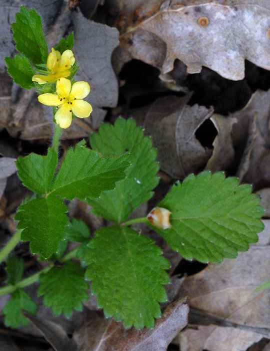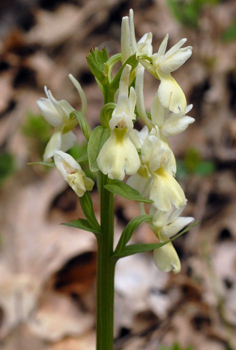 We had one final stop before lunch to see a special plant which prefers the shade. Under the trees the pale yellow flowers of Dactylorhiza romana (Roman Orchid) added another to our our growing list of orchids seen on the Gargano. We also found one young undeveloped stem of Limadorum abortivum (Violet Bird's-nest Orchid) which is a deep violet saprophytic orchid plant with no green leaves. Such plants live of rotting organic matter rather than making their own carbohydrates through photosynthesis. This allows them to live in deep shade as they have no need for sunlight. This plant was too young to see any definition other than a purple stem and unfortunately we could find no others and I for one looked very hard indeed. Low on the ground were some odd looking things which looked like miniature insectivorous pitcher plants. These were Aristolochia rotunda (No English name) and much smaller than the large climbing species: Aristolochia baetica (Dutchman's-pipe) of southern Spain which I found in 2008. Also some small yellow plants which I mistook for Duchesnia indica (Yellow Strawberry) were actually Aremonia agrimonioides (Bastard Agrimony). This is an escape in the British Isles and it grows in shade close to the Thames near Kew. I have seen it several times without flowers and so now I know what to look for.