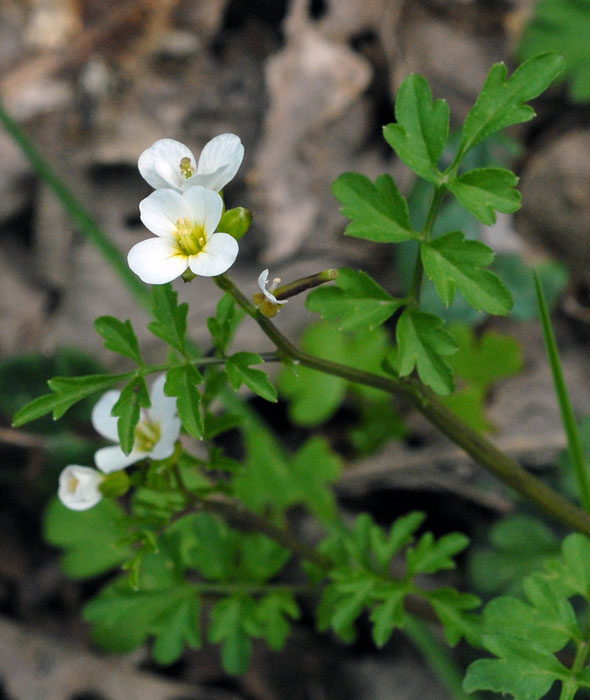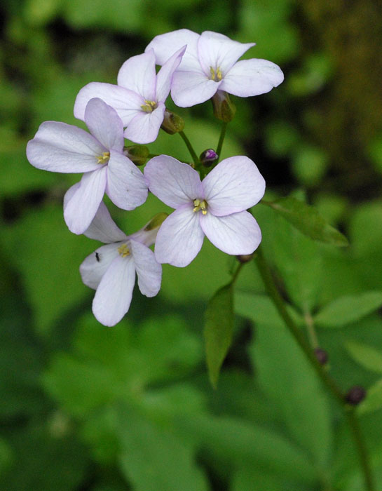 Also known as Fumewort in the United States, this is a poisonous plant but it can have deep lilac coloured flowers as well as pink. Nearby there was a large deadnettle, slightly paler than our British Red Deadnettle (Lamium pupureum) but much taller and stouter. Having seen something like this in Slovenia I wondered if it was Lamium orvala but this one was Lamium garganica (Large Red Deadnettle). A tall pink crucifer was flowering dotted all over the forest floor wherever light dappled through the leaves and I have seen this one before but only in fruit so didn't recognise it. It was Cardamine bulbifera (Coralroot) which produces black bulbils rather than seeds after flowering.