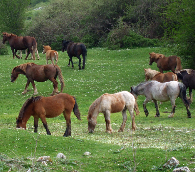 We searched for a roadside bank which had been seen by one of our leaders on a recent reconnaissance visit and eventually found it. It was covered in Narcissus poeticus (Pheasant's-eye Narcissus). This is a often used for plant in spring flower beds so we know it well but there is something special about seeing it in its natural habitat. There were a few orchids too and we identified Ophrys garganica (Gargano Orchid) without help from our leader this time. In the woods there were tall yellow daisies which were similar to our common Leopard's-bane (Doronicum pardalianches) but it had the "wrong" leaves. This species was the Heart-leaved Leopard's-bane: Doronicum columnae. Drifts of Blue Anemone Anemone apennina were among the Narcissi together with the occasional darker and taller Anemone hortensis (No English name). I found and photographed a white Crucifer (never good news for a botanical leader) but none of us could identify it there and then. It turned out to be Thlaspi praecox through matching the flowers, leaves and most important of all with crucifers, the fruit from the photograph.