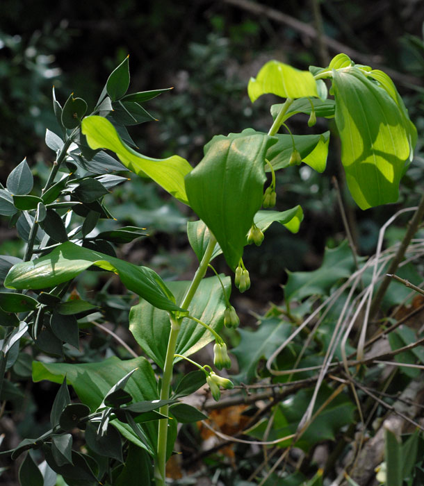 So far we'd had to wear over-trousers and waterproofs for most of the time but as we walked through the forest after lunch the hot southern Italian sun came out for longer periods of time (i.e. about 20 minutes) forcing us to strip off. On this very pleasant walk we found Cardamine plumieri (Ivy-leaved Bittercress) on the verges, Polygonatum multiflorum (Solomon's Seal) on a hedge bank and a delightful patch of Anchusa cretica (No English name). At the side of the path there were quite a few small shrubs with sharp pointed "leaves" and dead flowers in the centre. This was Ruscus aculeatus (Butcher's-broom) which had long since finished flowering. The leaves are actually bracts and you can just make out a dead flower in the centre of a bract on the left-hand side of the Polygonatum multiflorum photograph.