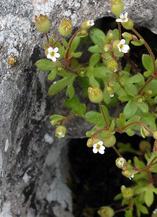 With so many beautiful and interesting species we could easily have missed the tiny white flowers of Saxifraga tridactylites (Rue-leaved Saxifrage) which were dotted here and there amongst the rocks. However if you are used to botanising in the early British springtime you should be quite used to looking for tiny, superficially insignificant flowers like Teesdalia nudicaulis (Shepherd's-Cress, Cerastium semidecandrum (Little Mouse-ear) or even Mibora minima (Early Sand-grass) compared with which Saxifrage tridactylites is is a good sized species.
