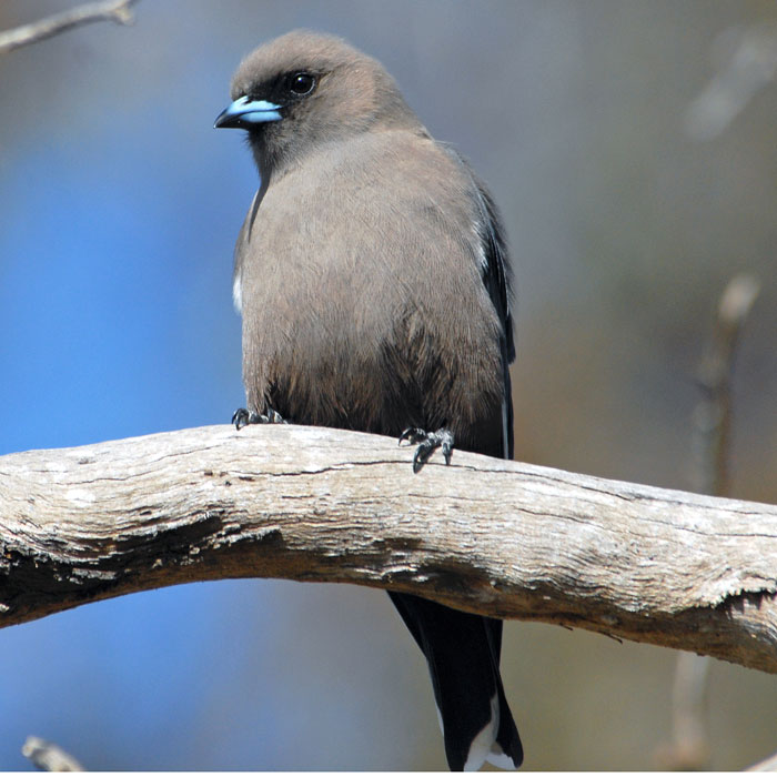 Artamus cyanopterus is known in Australia as the Dusky Woodswallow but is not actually a Swallow. It belongs to the Artamidae family which includes Currawongs and the Australian Magpie both of which are more like crows to a British bird observer. It lives in Eucalyptus forests in this part of the world and is quite a common bird.