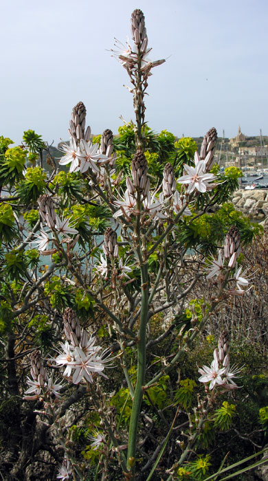 In Gozo these plants were abundant on the rocky coastline and in March were at their very best. They are tall standing over 2 m sometimes. In the background is Euphorbia dendroides (Tree Spurge) which is equally abundant here in Gozo.