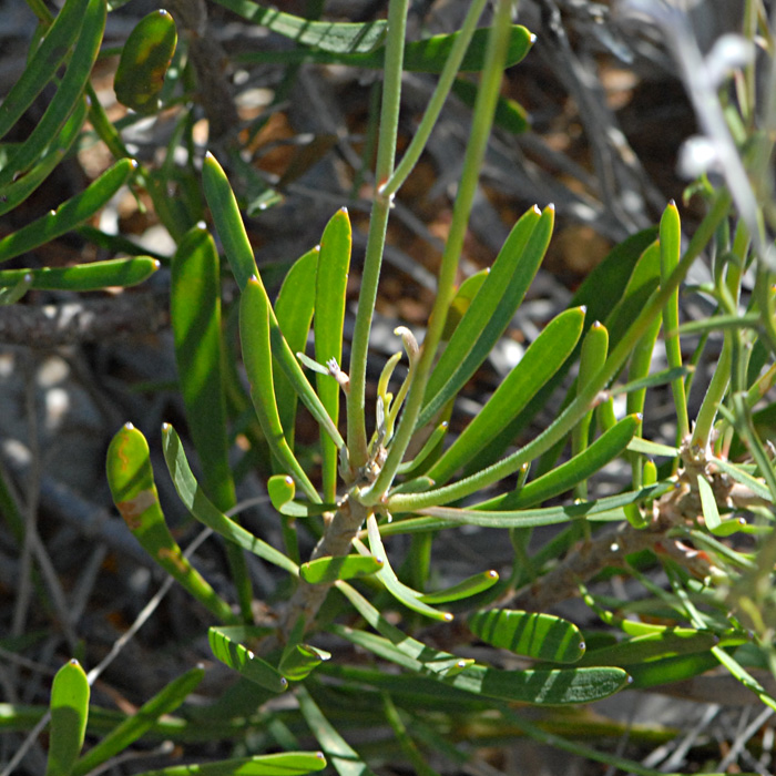 Conospermum species are generally know as "Smoke Bushes" because en masse large numbers of them just look like a smoky haze accross the landscape. And they really do. This one has tiny red flowers which along with the basal leaves are quite distinctive enough for an identification.