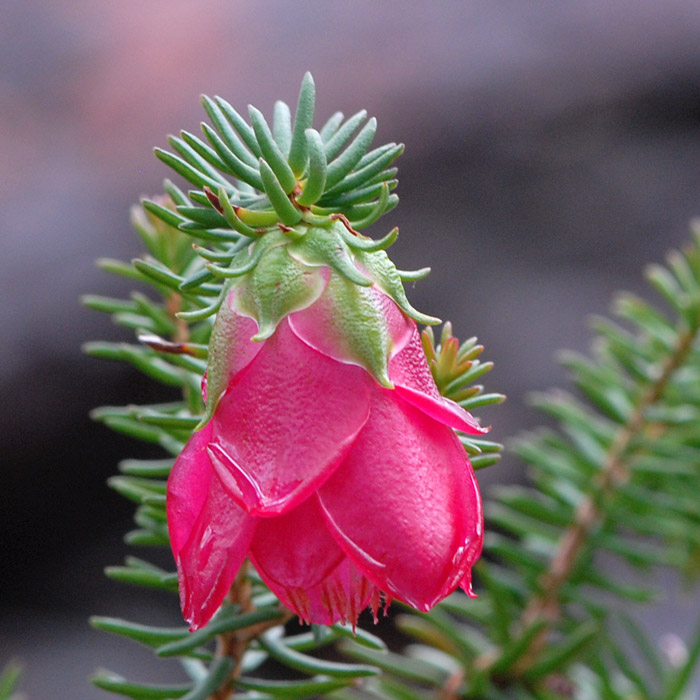We needed to fight our way through overgrown bush and up to a huge rock which was part of this ancient landfall. Around this rock the Darwinia leiostyla grew and was luckily for us in full flower. It is sometimes known as Mountain Bell but there are various Darwinia species which grow on these slopes also called Mountain Bell so that cannot be used as a unique English name.