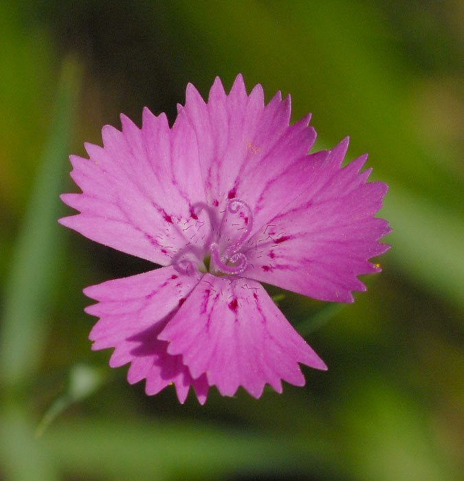 This very pretty pink was flowering very late on a hillside where there had been a reasonable amount of rain preventing the drying out of the ground which can so often happen through summer in Europe. It does look superficially like other pinks but this one is common in the area. There are several sub species of this plant.