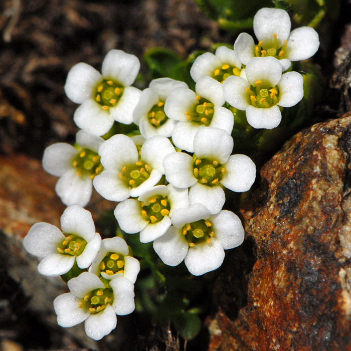 Common in the Arctic on such places such as Baffin, Devon, Ellesmere and Parry Islands and circumpolar in its distribution, this acid rock loving plant is only found in the Alpine regions from 5,000 feet upwards. This site for instance was over 10,000 feet high. The margins of the leaves are ciliate (very coarse hairs) but stems are both leafless and hairless. To help secure a footing in very windy and hostile environments such as these D. fladnizensis has a tap roots.