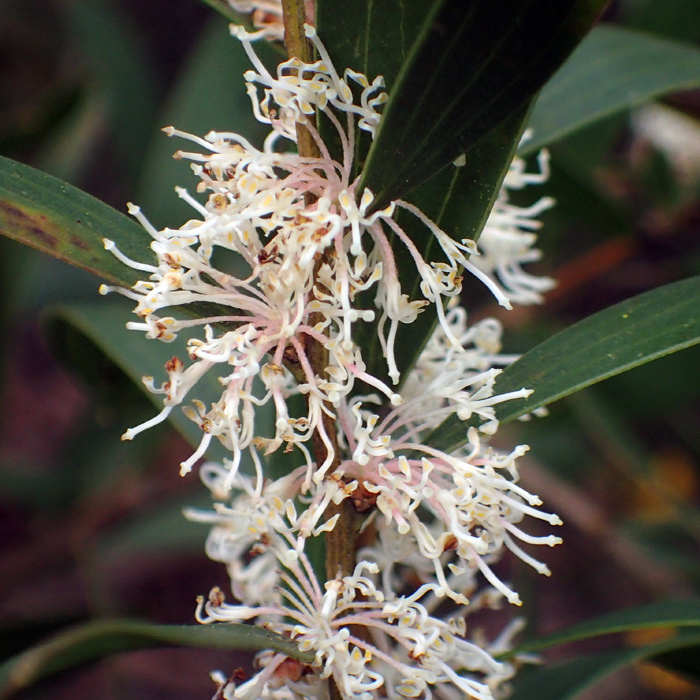 dactylis in this context of the species name is Greek and alludes to finger like shape a type of grape but here -oides meaning "something like", refers to the shape of the fruits which Hakea dactyloides produces after flowering. The flowers are usually white but can occasionally be pink and the plant is endemic to Australia in New South Wales and Queensland along the coast and a little way inland. It has been successfully introduced to the gardeners of Europe as it is quite tolerant of variable growing conditions and is not too difficult to propagate.