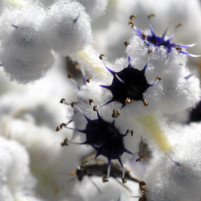 As well as being quite spectacular, covered as it is in white fluffy flowers, this endemic shrub can be up to 2 even 3 metres tall. The flowers are so close to each other that it is difficult to see any structure but from a distance it has the effect of a roundish shrub covered in blobs of wool like the common name suggests.