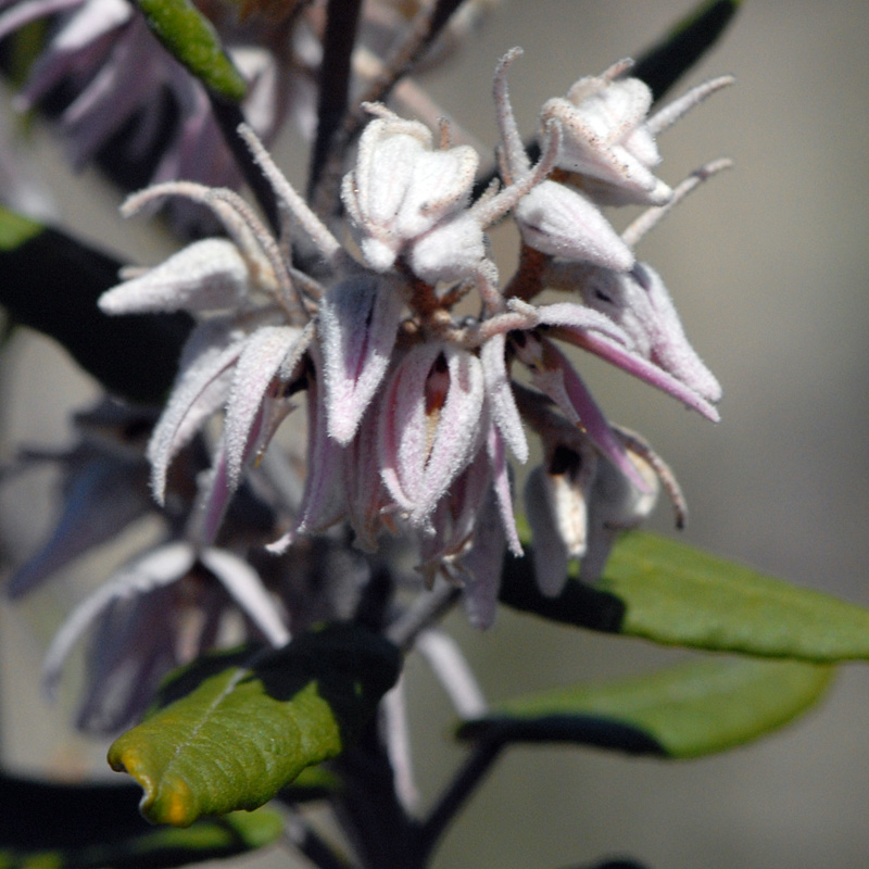 The genus name means shaggy (lasios) and petal or leaf (petalum) which describes the appearance of these rather strange looking flowers. Velvet Bush is a member of the family Malvaceae. They are related to Thomasia, another species where the flowers hang down so the photographer has to try to get underneath and point the camera skywards.