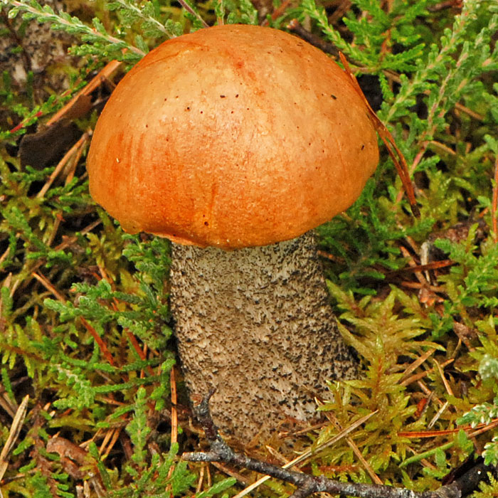 The usual habitat for Leccinum aurantiacum is usually deciduous woodland but this was found in heather near Pinus species which, if this was North America would suggest the very similar Leccinum vulpina but not all mycologists accept that these taxa are separable.