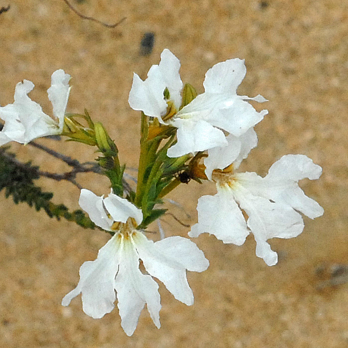 Unlike some of the procumbent members of this genus such as Lechenaultia formosa (Red Leschenaultia) and Lechenaultia tubiflora (Heath Leschenaultia), this plant is a small shrub about 0.5 m in height but known only from a few places in the northern wheatbelt. It has priority 3 as far as rarity goes which really means it is quite scarce and its ecology needs further investigation.