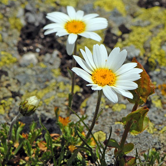 Occurring in Spain, France, the Alps and Corsica, this plant has flowers almost exactly like our UK Ox-eye Daisy (Leucanthemum vulgare) but on much shorter stems. It is found in true alpine regions and can be an early coloniser after the retreat of glaciers.