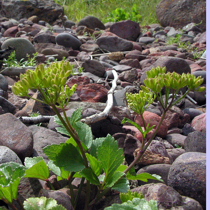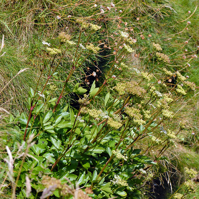 This plant loves the coast so much it is often found in the rocks splashed by the sea. Its typical celery like glossy foliage doesn't often have many flowers to show on the young plant at Achmelvich where it is flowering much later than normal. It has various medicinal and historically culinary uses in soups or salads and at one time sailors would use it as a source of vitamin C. It is supposed to help digestive disorders, rheumatism and certain problems with the uterus according to herbalists.