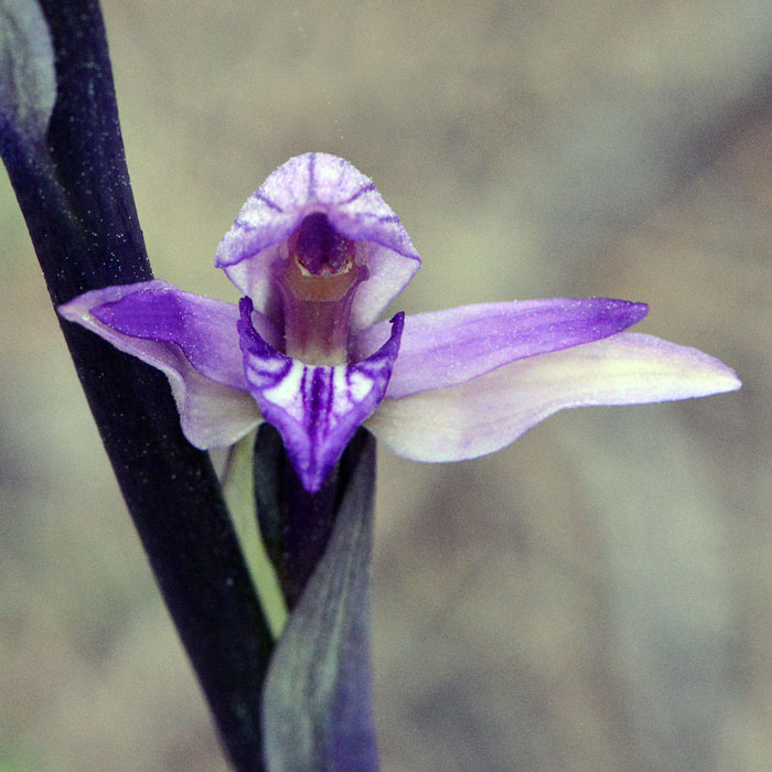 Limodorum abortivum (the abortivum species name refers to the stunted leaves) is a tall orchid normally receiving its nourishment from mycorhizal associations with fungi such as Russulaceae. It is known from other studies that some pine trees are linked by underground networks of soil fungi so it could be (my speculation) that Limodorum abortivum taps into such networks allowing it to be part of a larger association than just orchid and fungus. If this eventually turns out to be proved than it might explain the large size of this orchid - it could be indirectly parasitic upon the neighbouring pine trees under which it usually grows.
