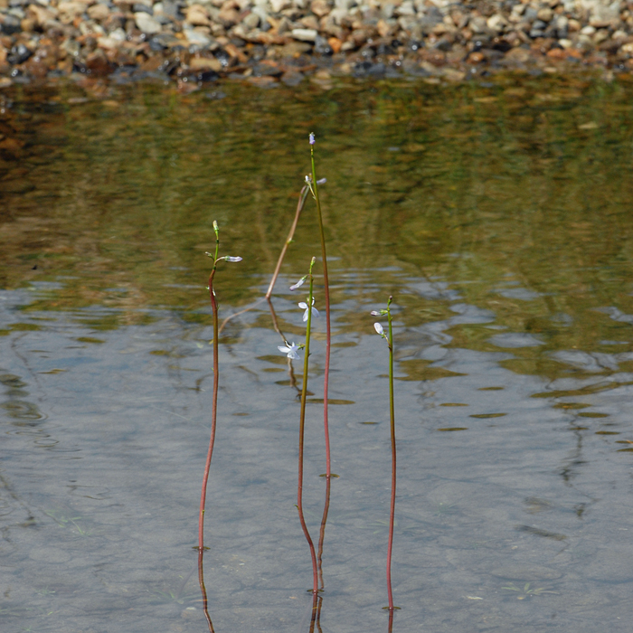 It was probably a little late in the season to find a good selection of flowers to photograph at this site. This is a difficult plant to capture as the bare stems have few flowers and tend to grow just out of reach in the shallows of this mountain lake. Not uncommon in mountain lakes or in the far north of Britain at sea level, Lobelia dortmanna flowers in mid to late summer often in large numbers from rosettes just about discernible in the LHS photograph.