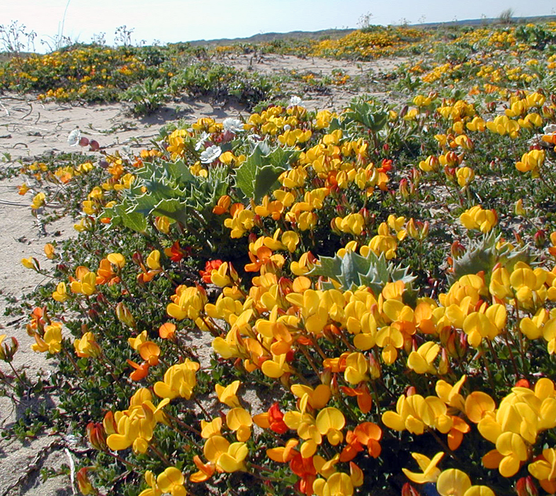 An essential food plant for the common blue butterfly, you find this in and near dune systems by the sea as well as inland. I took the photo of L. corniculatus by the seaside during the Foot and Mouth epidemic of 2001 when most country places were out of bounds. Here it is growing with Silene uniflora (Sea Campion) and Eryngium maritimum (Sea Holly) on the sea shore - below the winter tide line too. According to Geoffrey Grigson in his excellent book The Englishman's Flora, there are more than 70 common names for this plant!