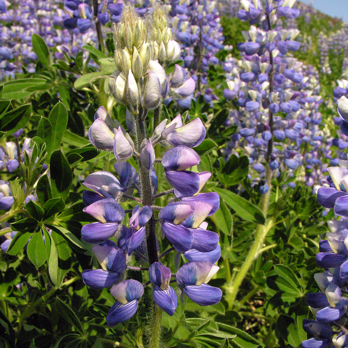 At first it doesn't look a lot different from many roadside lupins which so frequently escape from cultivation but look closely and you can see the long shaggy hairs which are typical of this species. They are long enough even to be visible in the photo.
