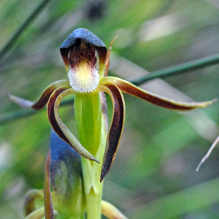 Lyperanthus serratus is one species of only two in this genus and the odd English name comes from the fact that if shaken, the flowers rattle. There can be up to ten flowers of a spike. L serratus prefers the damper south western corner and so Perth is at the northern edge of its range.
