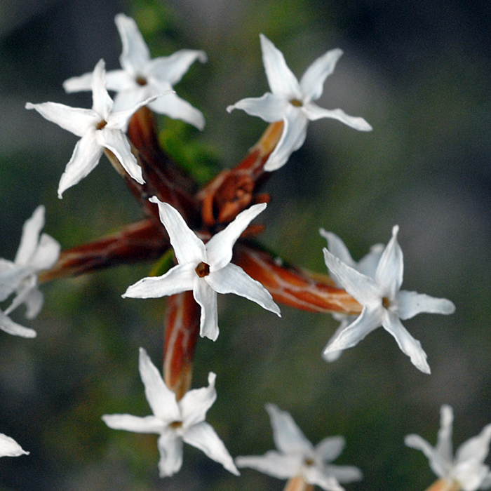 This shrub, a member of the Epacridaceae, is found in much of the south western corner of Western Australia and the flowers can be white as here or brown, cream or even pink. Like many plants (botanical science is discovering) this one is associated with a mycorrhizal fungus from which it receives nutrients. These chemicals give the flowers a scent reminiscent of curry hence the common name.