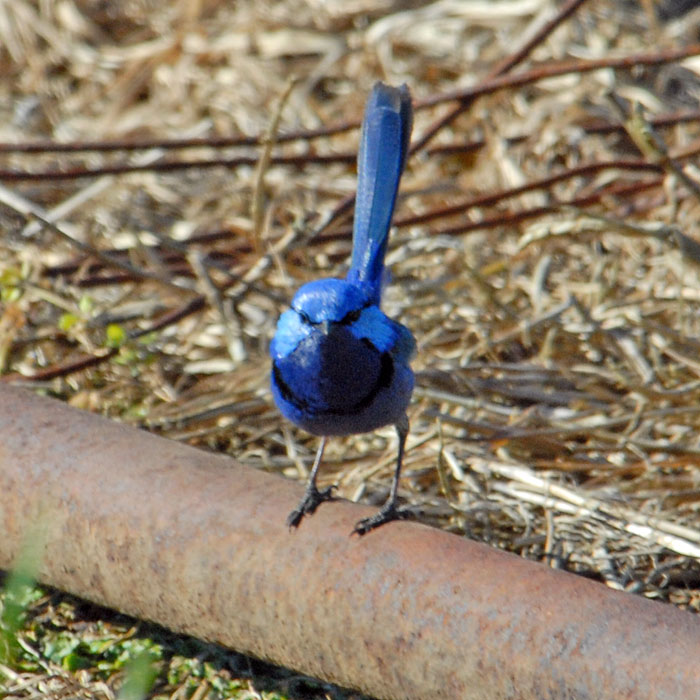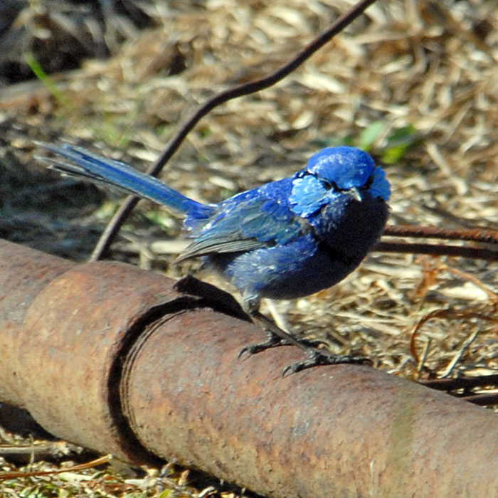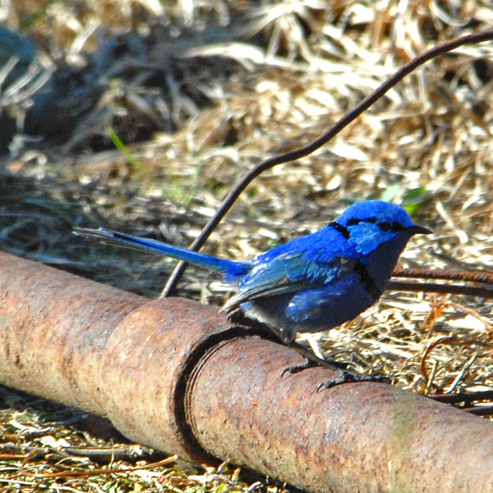 This beautiful little Passerine bird becomes more noticeable as Spring arrives and the males (below) change to a bright metallic blue colour. Usually they move quickly between the branches of shrubs inn the countryside making photography quite tricky but the were seen on an apple farm and away from the house. They live on small insects such as grasshoppers, spiders and ants and prefer the more arid parts of Australia where they are native.