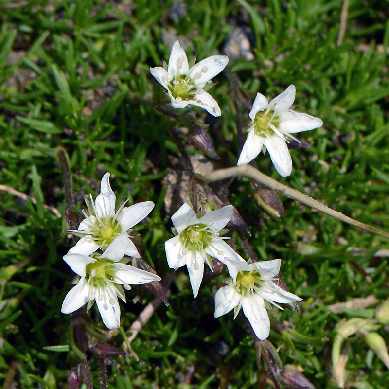 We saw this plant at nearly 8,000 feet in the Dolomites near the Padon Refuge, which sounds like a bleak hut in the snow but actually you can buy a meal there. (We didn't). The linear, recurved leaves are what give his Sandwort it's name but other than that the flowers do look quite like the much commoner (in Uk) Minuartia verna (Spring Sandwort).