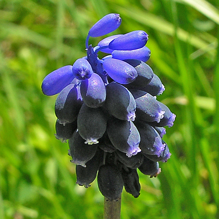 You may well have seen a Grape-hyacinth in the countryside somewhere but unless you go to the right places it will invariably be the garden variety M. armeniacum. This one is the rare native species and is found in only a few places mostly in East Anglia where it grows on grassy banks and in amongst trees in dappled shade.