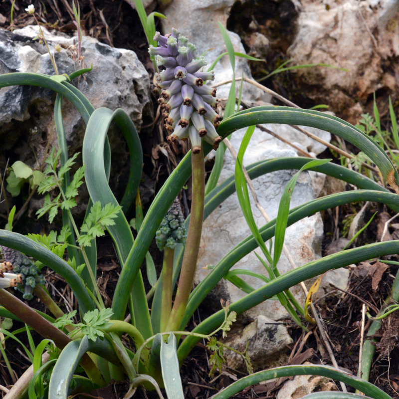 Muscari neglectum Guss. ex Ten. ( M. atlanticum Boiss.and Reut., M. racemosum Lam. and DC non (L) Mill.) It turns out that the correct synonym would have been Hyacinthus racemosus Linnaeus 1753 not Muscari racemosum Miller 1768. The trouble is that mistakes are copied and these days with widespread fast internet connections, very rapidly. Going viral comes to mind.
