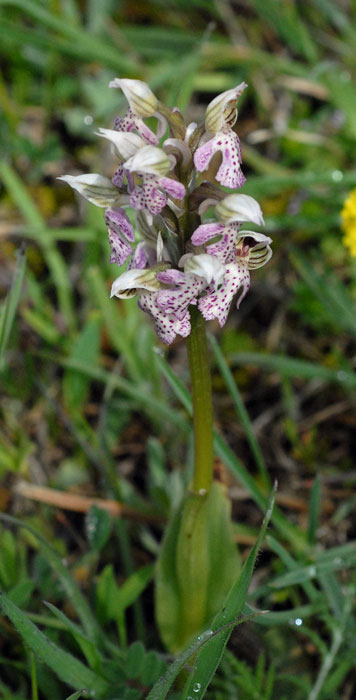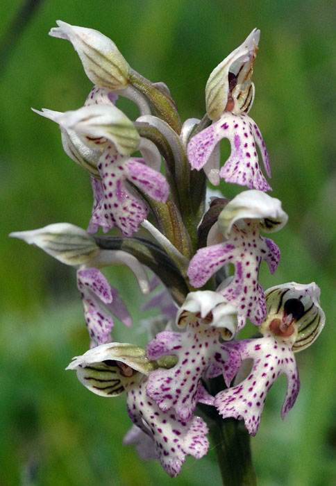 This was one of the less common orchids in the orchid rich countryside of the Gargano. The flowers are mostly this pinky white colour which is supposed to be the reason for English name: Milky Orchid. They can be darker in colour.