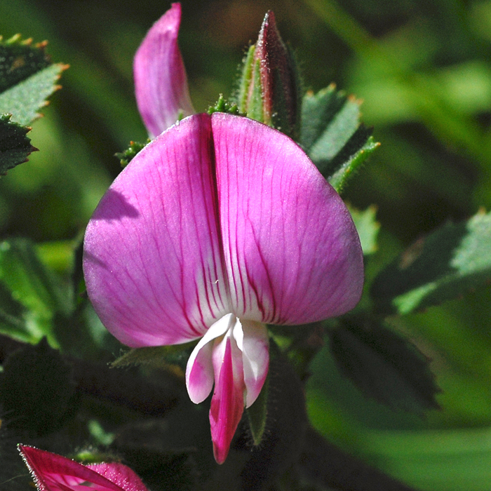 The common name: Rest-harrow comes form the time when it was a common agricultural weed and the roots were so tough and dense that they would entangle the farmer's harrow pulled by a horse and bring the thing to a halt.