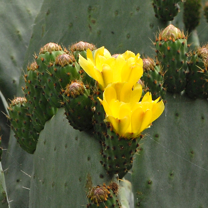 Also known as Indian or Barbary Fig and at one time grown as a fruit crop, this plant is a common sight in various Mediterranean countries. Sometimes the plant is even used for hedging. The flowers are bright yellow, red or white and the fruits reddish and edible. It is thought to have originated in Mexico.