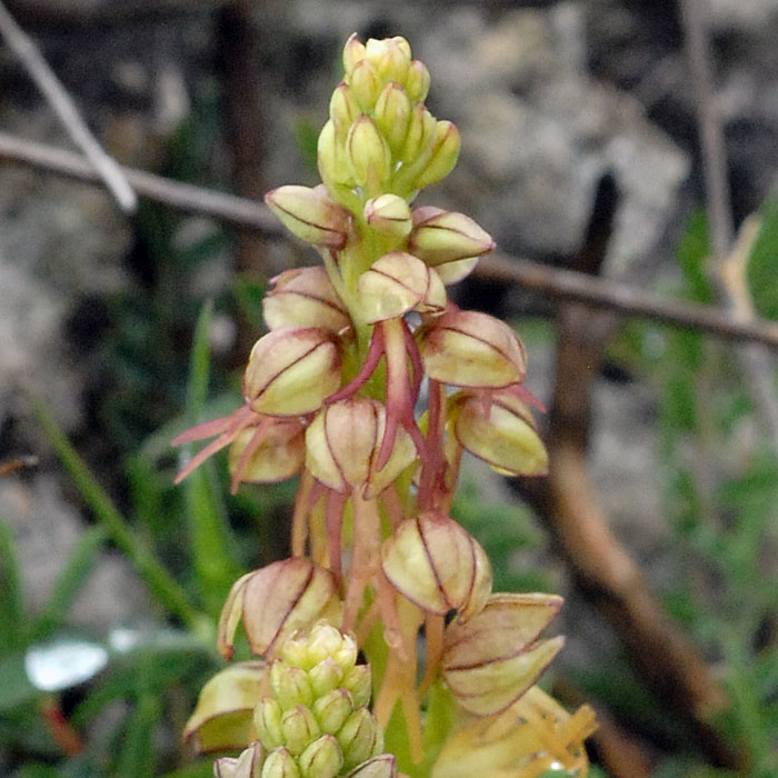This is a special and rare orchid found in the south of the U.K. but in the woods of the Spanish Lake District National Park and on the hillsides of the Gargano in Italy, it was quite common. The close-up of the floret gives a clue to the common name for this plant.
