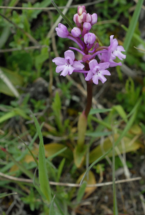 Although the patch we found of this orchid had quite a few good specimens it wasn't common on the Gargano sites we visited during the week and this was the only really good patch we saw. At this site it was a very small orchid and only two of the spots were immediately visible. The camera has picked out two other deeper inside the corolla normally obscured from view. The plants we found growing on stony ground had few flowers but it can have more than 30 in a spike.
