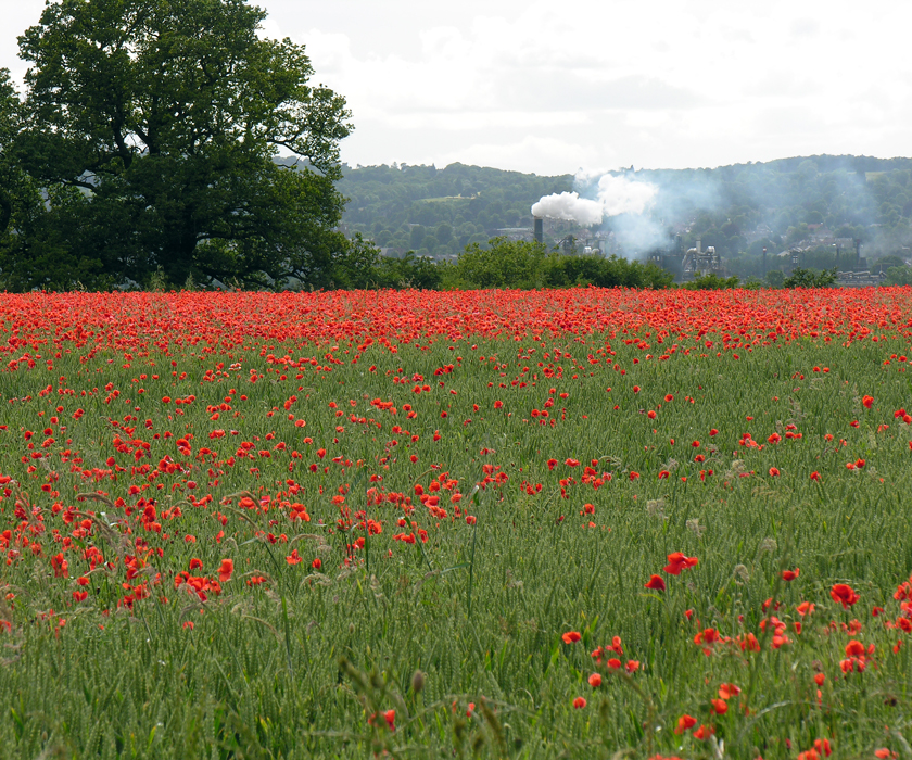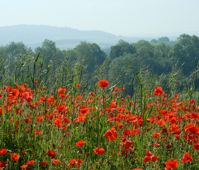 In spite of the much publicised gloom about herbicides making mono cultures of our common crops it is still possible to see fields of wheat, barley or oats in which Papaver rhoeas gives a stunning splash of red.