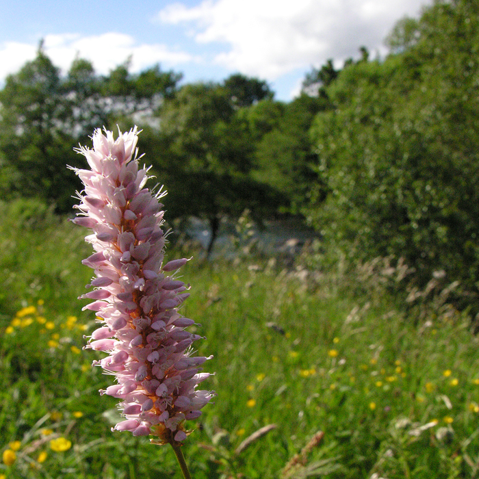 This is a quite common plant but when in full flower a stand of Bistort is as eye-catching as any wild flower. The "bistort" from the Latin: bistorta refers to the twisted snake-like shape of the rhizome (underground stem) of this plant. Naturally using the principles of sympathetic magic it was used as a cure for snake bite in the old days.