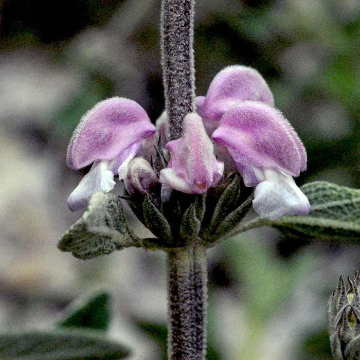 This very pubescent shrub grows mainly on the Iberian peninsula and prefers the exact stony barren habitat where we found it. The pale pink/purple flowers are supposed to bloom from April to June so we were lucky to find one shrub with the very first flowers showing in March.
