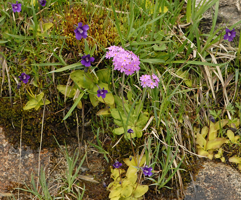 In Europe Primula farinosa will grow as an alpine on mountains up to 10,000 feet in height. In the habitat photograph below the blue flower growing with pink Primula farinosa is Pinguicula grandiflora (Large-flowered Butterwort).