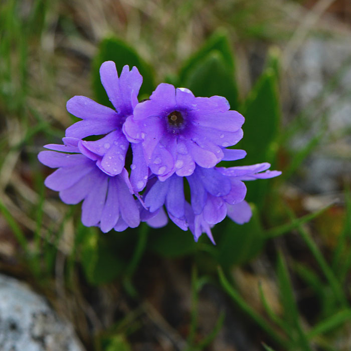 On this botanical tour of the Dolomites one half day was set aside to explore a new place. It looked fairly hopeless at first as the bare rocks and gravel interspersed with snow patches betrayed a late Spring. Soon though we found some grassy patches with these dark purple purple flowers amongst the boulders. Even modern cameras are not good at recording purple/blue hues accurately so the colour should be darker if I remember it correctly. Like Soldanella alpina (Alpine Snowbell) this plant is one of the first to colonise unfrozen ground after winter has passed. It is called Sticky Primrose because of the many glandular hairs and is found on granitic (therefore acidic) rocks in the eastern and central Alps, parts of Austria and Croatia.
