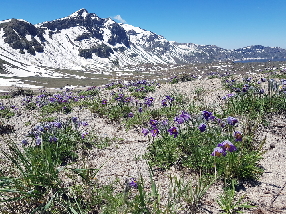Even in late May the snow lay quite thick in parts inside the rim of this extinct volcano. There were plenty of patches of unfrozen gravel though, and the plants of the area are quick to take advantage of the brief period of warmth. There are several sub species of this plant and this one is probably ssp armena which makes it the Armenian sub species of the Albanian Pasqueflower. According to GBIF distribution maps this species can be found in the various countries of the Caucasus, Turkey, Armenia and possibly Iran but not necessarily Albania.