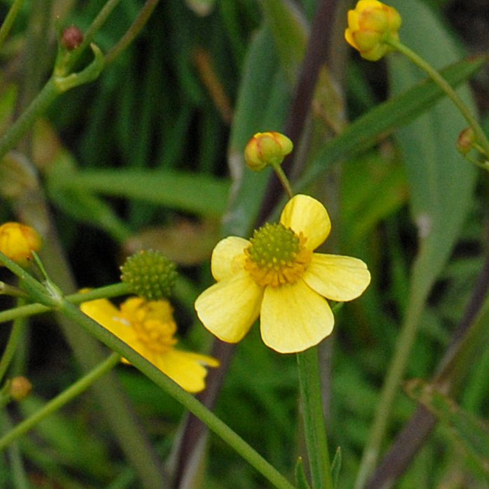 At first glance this looks like any other medium sized buttercup until you look at the long narrow spear-shaped leaves which are quite unlike those of the common grassland buttercups R. acris (Meadow Buttercup), R repens (Creeping Buttercup) and R. bulbosus (Bulbous Butercup). It prefers waterlogged or boggy ground and is found throughout the British Isles and Ireland even on the outer islands such as Shetland and St Kilda.