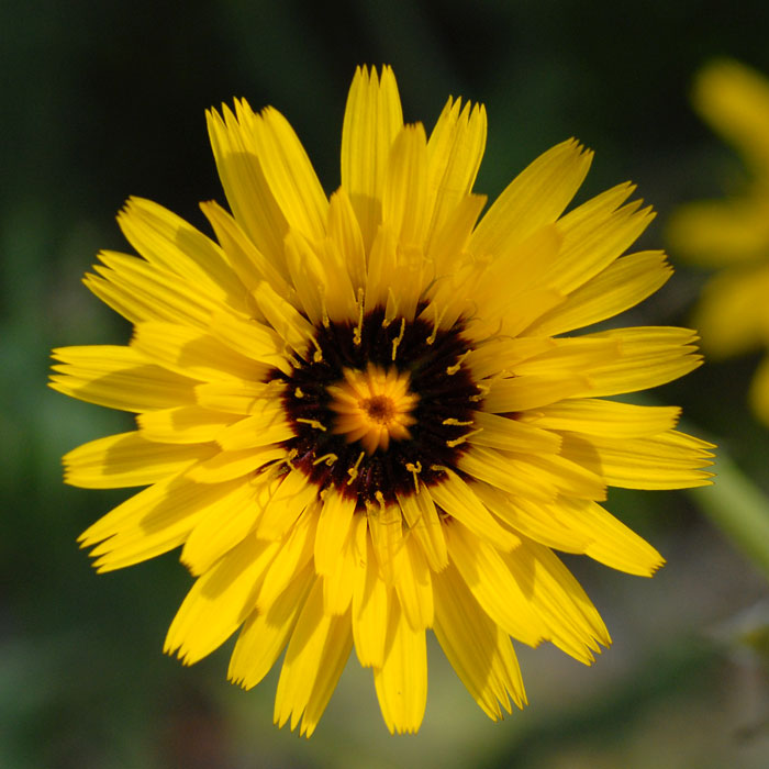 This is a fairly common and vigorous perennial plant found on waysides, lowland waste places and as a weed in gardens which has rather spectacular flowers. The hairless Hawbit like appearance and pinnate leaves are characteristic. It is found in southern Spain, north Africa, Sicily, Greece and many of the islands.