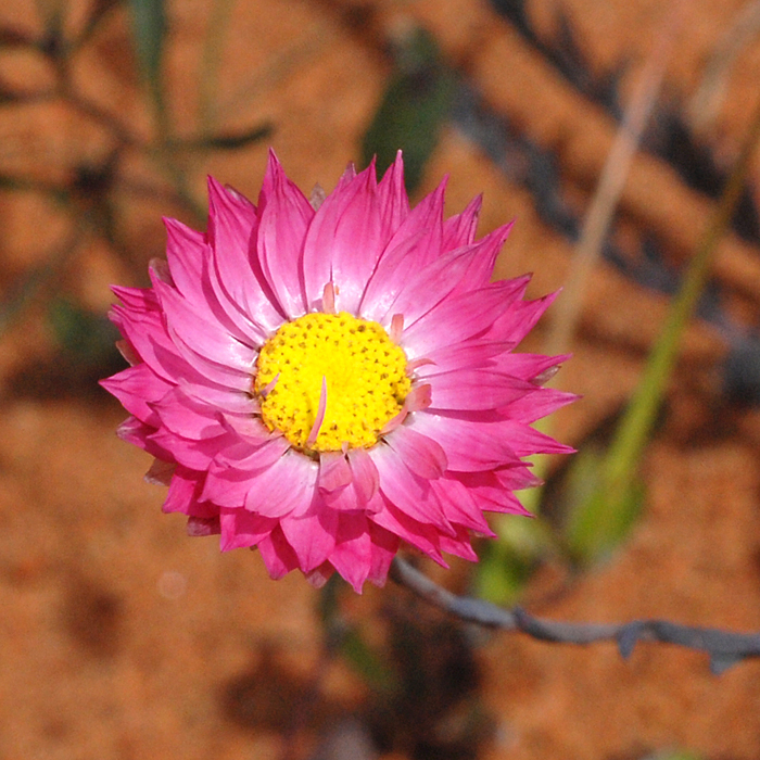 Rhodanthe chlorocephela ssp rosea can be white, pink or yellow and is found inland from Kalbarri towards the wheat belt but extending into the desert beyond. It is a favourite with gardeners as it can be more easily grown than many native species and will even seed itself from one year to the next. Rhodanthe is a relatively new genus,. Previously many of the plants now known as Rhodanthe species were placed in Podotheca, Helipterum or Waitzia.
