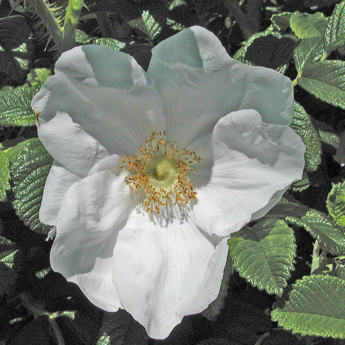 This Asian introduction is often to be found on dunes or rough ground near the sea. Most flowers are red/deep pink but a few are white and on a warm day you can smell this flower before you see the colour of the flowers. After flowering it produces large diameter red hips.