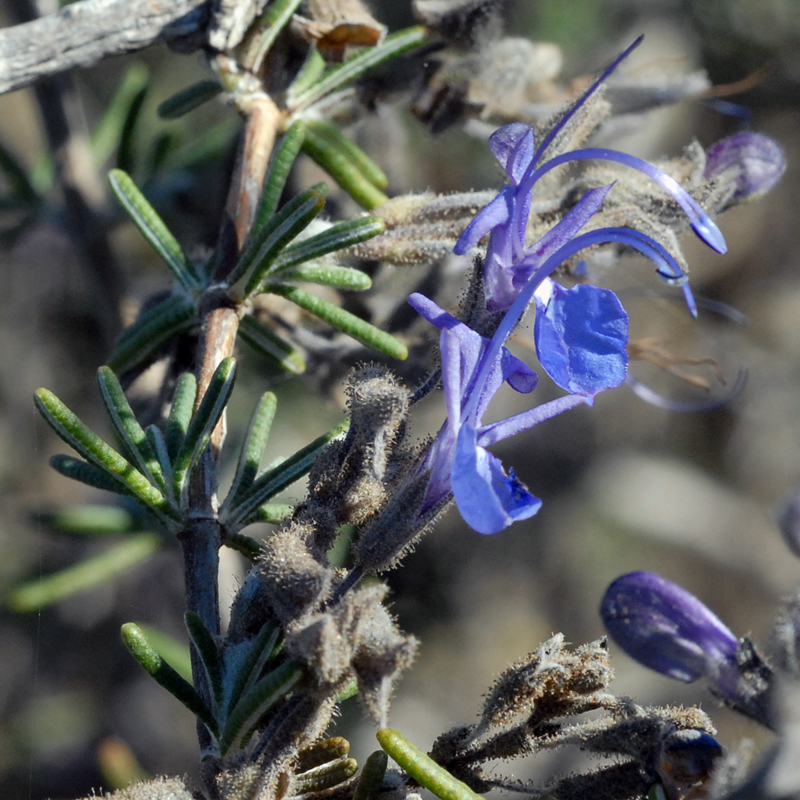 There are three species of Rosemary, not including hybrids, which we are most likely to encounter: Rosmarinus officinalis, Rosmarinus tomentosus and this one, Rosmarinus eriocalyx. Rosmarinus officinalis is the best known and although not native, is well naturalised in Britain and Ireland probably because of its extensive use as a culinary herb.