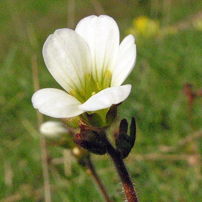 This May flowering native grows in clumps and is quite common in Cressbrookdale. At first i used to find it in clumps of no more than about twelve but venturing much further a field during the Foot and Mouth crisis of 2001, I also came across huge numbers of this delightful lowland Saxifrage at Abermenai point near Newborough warren on Anglesey.