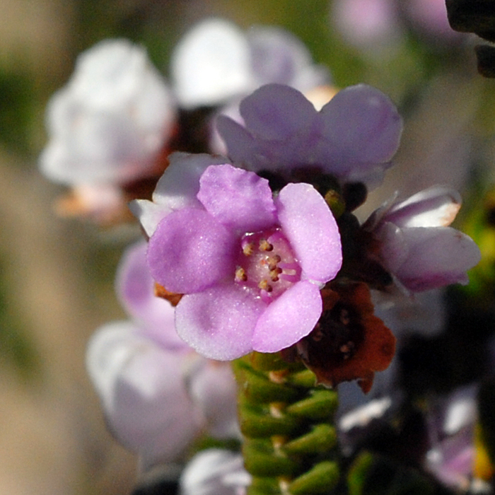 These shrubs with quite small leaves grow along the western Australian coastal region from north of Geraldton to just south of Perth and inland into the wheat belt. There are almost as many unnamed species in Scholtzia as named ones and none seemed to fit this shrub although there is known to be a Scholtzia growing in the Kalbarri region with pink flowers. The genus Scholtzia was named after Heinrich Scholtz a physician from Bratislava who studied the flora of the region.