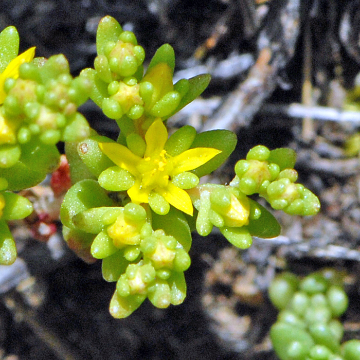 An inconspicuous low growing annual, this little Stonecrop sometimes has red tinges in leaves and flowers. It is actually an arctic alpine with its most significant populations growing in Scandinavia, Finland and even Greenland with a few in the north eastern United States. In Europe there are outposts in Spain and elsewhere but it is found in good numbers in the Alps and the Pyrenees where this one was photographed.