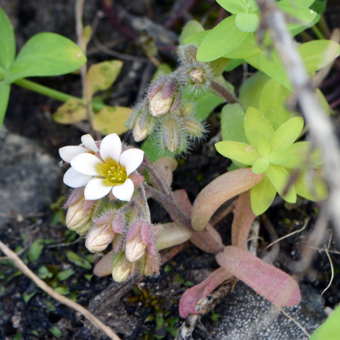 This tiny little Sedum likes to grow in amongst rocks, in stony places and on walls but scarcely reaches 10 cm or at most 15 cm in height, so is easily overlooked. It is found in southern Spain, Portugal and parts of North Africa.