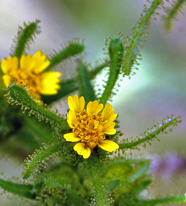 Neither books nor the fellow botanist who alerted me to the presence of this plant mention its most distinctive feature: extreme stickiness (see large image). The long bracts below the flower (which could be part of the calyx) are covered with very sticky glandular hairs and after taking several photos I found my fleece covered in plant bits including seeds. It's worse than Goosegrass (Galium aparine) which is known for its ability to stick to your clothes hence its other colloquial name: Sticky Willy! Looking at the size of these sticky blobs (glandular hairs) on the bracts of Sigesbeckia serrata which are comparable with the size of those on a Drosera rotundifolia (Sundew), I wonder whether this plant is partially insectivorous.
